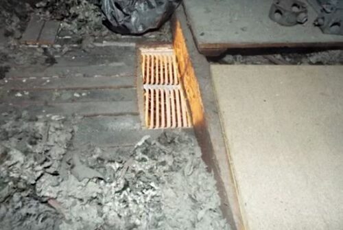 At one inspection, I encountered one of the most egregious examples of a home with a functional wind tunnel. The defect was created when part of the forced air heating system was removed. If you could zoom in on Figure 1, you would be able to see the furnishings in the room below. There were three of these vents going into the attic. The missing insulation around the vent is not even consequential in relation to this breach.