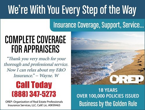 Some appraisers try to trim expenses during downturns by letting their E&O policy expire. Because all professional (E&O) policies are Claims Made, the risk is that an unreported claim arising from an old appraisal may not be covered if the policy has expired. “The way to stay protected is to maintain continuous E&O coverage or purchase ERP coverage,” Brauner says. “For those OREP insureds are retiring and qualify, you get free lifetime ERP,” reports Brauner. Call OREP or your agent for more. Stay safe out there! WRE