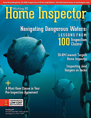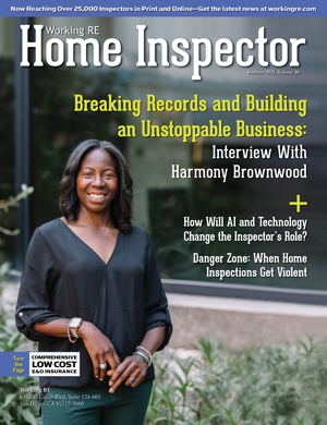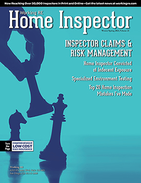 The Current Issue of Working RE Home Inspector  is mailing now to 25,000 home inspectors nationwide and covers the latest information, issues, and news that Home Inspectors are currently dealing with today.