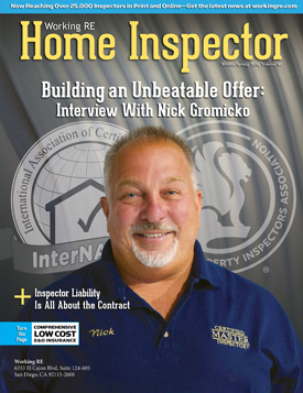 The Current Issue of Working RE Home Inspector is mailing now to 25,000 home inspectors nationwide and covers the latest information, issues, and news that Home Inspectors are currently dealing with today.