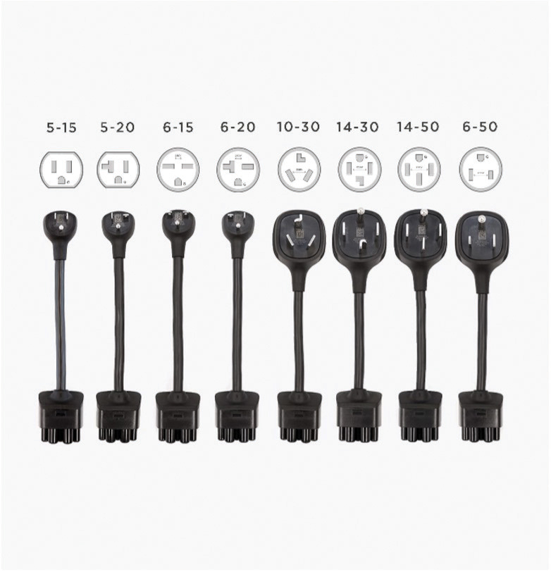 • Adapter Load Limits: Most, if not all plug adapters/mobile connectors have built-in amperage load limits based on the circuit rating ranging from 12 amps for a NEMA 5–15 adapter to a maximum of 40 amps for a NEMA 14–50 adapter. (NOTE: The Tesla 14–50 adapter limits the maximum amps to 32.)