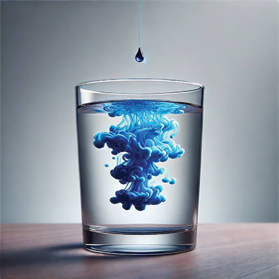 Figure 2: An example of simple liquid diffusion. Diffusion can occur in liquid, gas or solid states, and is mostly always more to less. Image created by Greg Johns via Dall-E (AI-generated).