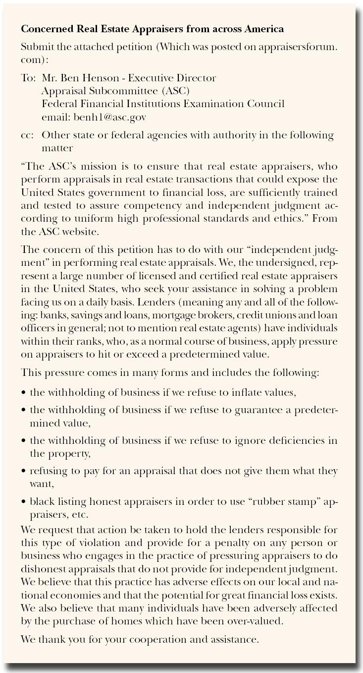 Figure 3: Petition from “Concerned Real Estate Appraisers from across America”