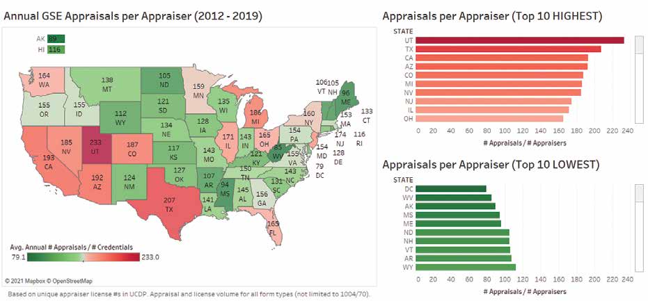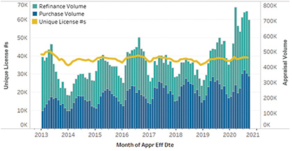 Figure 3: Based on unique appraiser license #s in UCDP. Appraisal and license volume for all form types (not limited to 1004/70).