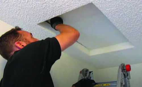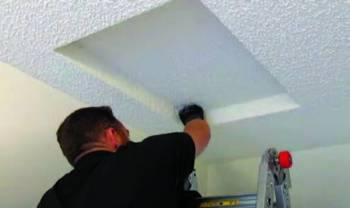 If an access panel is sprayed shut, we access the attic by bumping the scuttle hole cover with our fist (See Figure 1). View a video of how we do this here. When we’re done, nobody ever knows we even opened it.