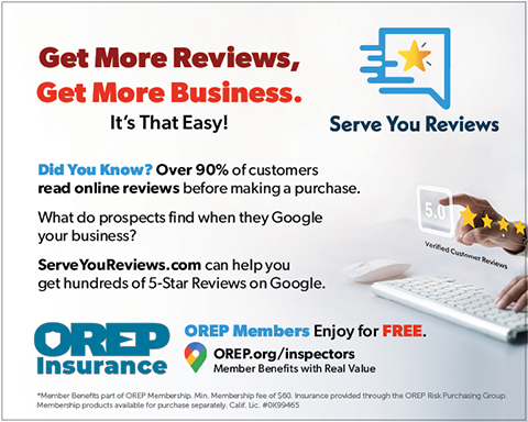 ![]() | > E&O/GL Insurance for Home Inspectors Competitive Rates, Broad Coverage, Free Risk Management, online inspection support for tough questions, discounts on education and more… Professional Coverage, Competitive Pricing Shop OREP today! |
